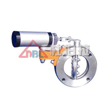 GIQ(D)型高真空蝶閥是由執行機構(氣動、電動)與轉角型蝶閥體二部份組成,中間由支架相連而成。以GIQ型為例:執行機構是由雙氣路氣缸為 主體,接受二位四通電磁閥控制輸出的(0.4~0.6MPa)氣源信號壓力為動力,通過控制元件改變氣流方向,執行氣缸驅動蝶閥作啟閉運動。